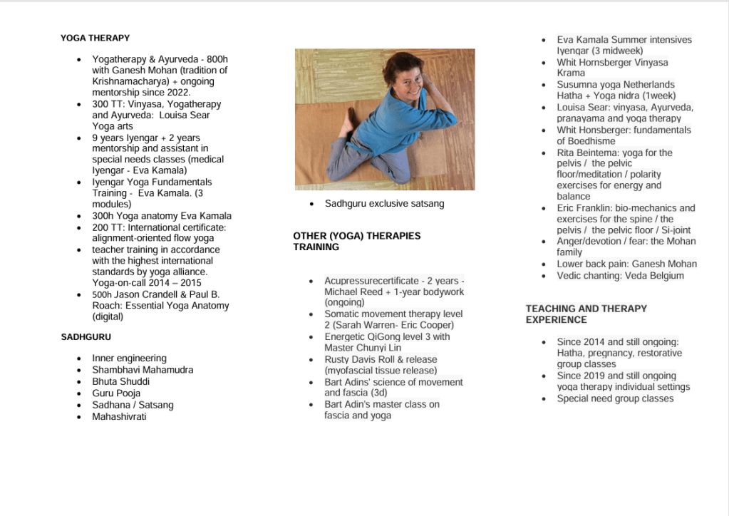 BIO Yogatherapie De weg naar innerlijke vrede Dit delen: Klik om te delen op X (Opent in een nieuw venster) X Klik om te delen op Facebook (Opent in een nieuw venster) Facebook Vind-ik-leuk Aan het laden...